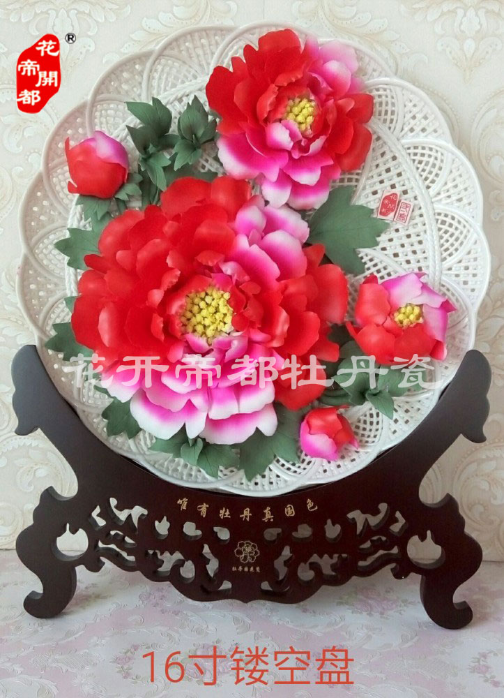 產品系列主要包括:牡丹瓷花盤、牡丹瓷屏風、牡丹瓷盆景、牡丹瓷壁掛和牡丹瓷鼎,形式多種多樣!每一件作品都是藝術的結晶,花、枝、葉均是手工捏制,造型逼真生動。