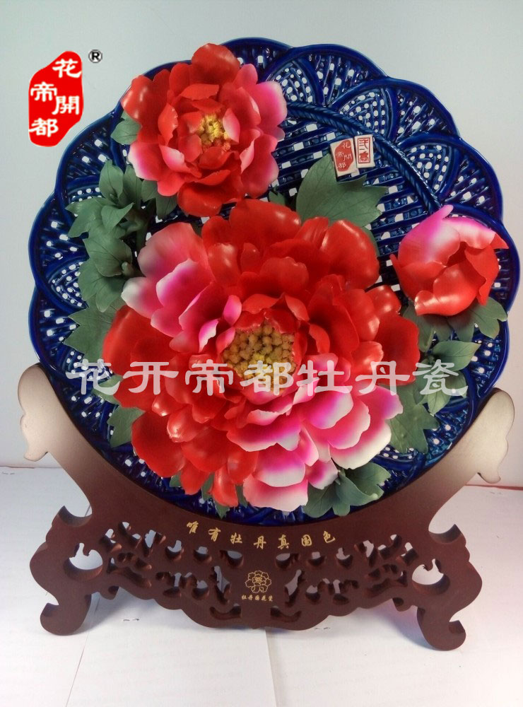產品系列主要包括:牡丹瓷花盤、牡丹瓷屏風、牡丹瓷盆景、牡丹瓷壁掛和牡丹瓷鼎,形式多種多樣!每一件作品都是藝術的結晶,花、枝、葉均是手工捏制,造型逼真生動。