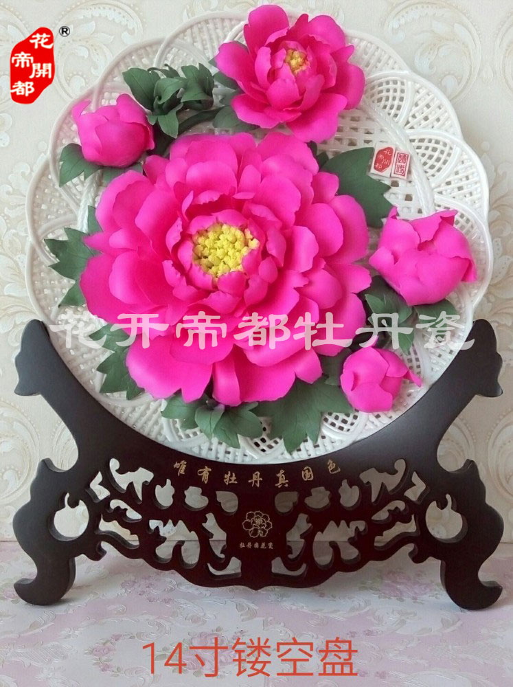 產品系列主要包括:牡丹瓷花盤、牡丹瓷屏風、牡丹瓷盆景、牡丹瓷壁掛和牡丹瓷鼎,形式多種多樣!每一件作品都是藝術的結晶,花、枝、葉均是手工捏制,造型逼真生動。