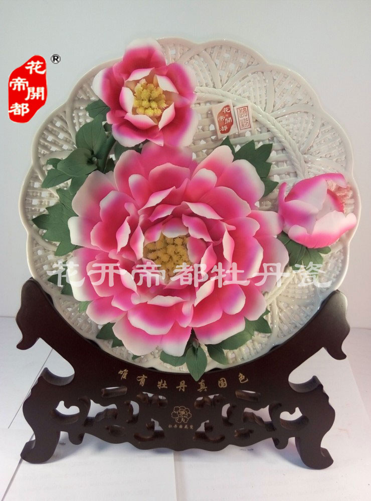 產品系列主要包括:牡丹瓷花盤、牡丹瓷屏風、牡丹瓷盆景、牡丹瓷壁掛和牡丹瓷鼎,形式多種多樣!每一件作品都是藝術的結晶,花、枝、葉均是手工捏制,造型逼真生動。