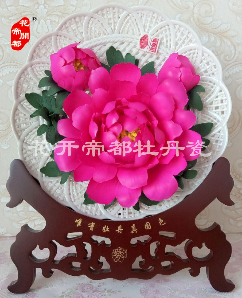 產品系列主要包括:牡丹瓷花盤、牡丹瓷屏風、牡丹瓷盆景、牡丹瓷壁掛和牡丹瓷鼎,形式多種多樣!每一件作品都是藝術的結晶,花、枝、葉均是手工捏制,造型逼真生動。